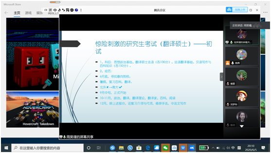 在南京大学就读法语笔译专业的19届毕业生周昊瑾和今年刚刚考上大连外国语大学的20届毕业生吴剑星则为同学们介绍了各自考研过程中的经历,就如何备考、如何选择院校和专业等学生最关心的问题分享了经验。
