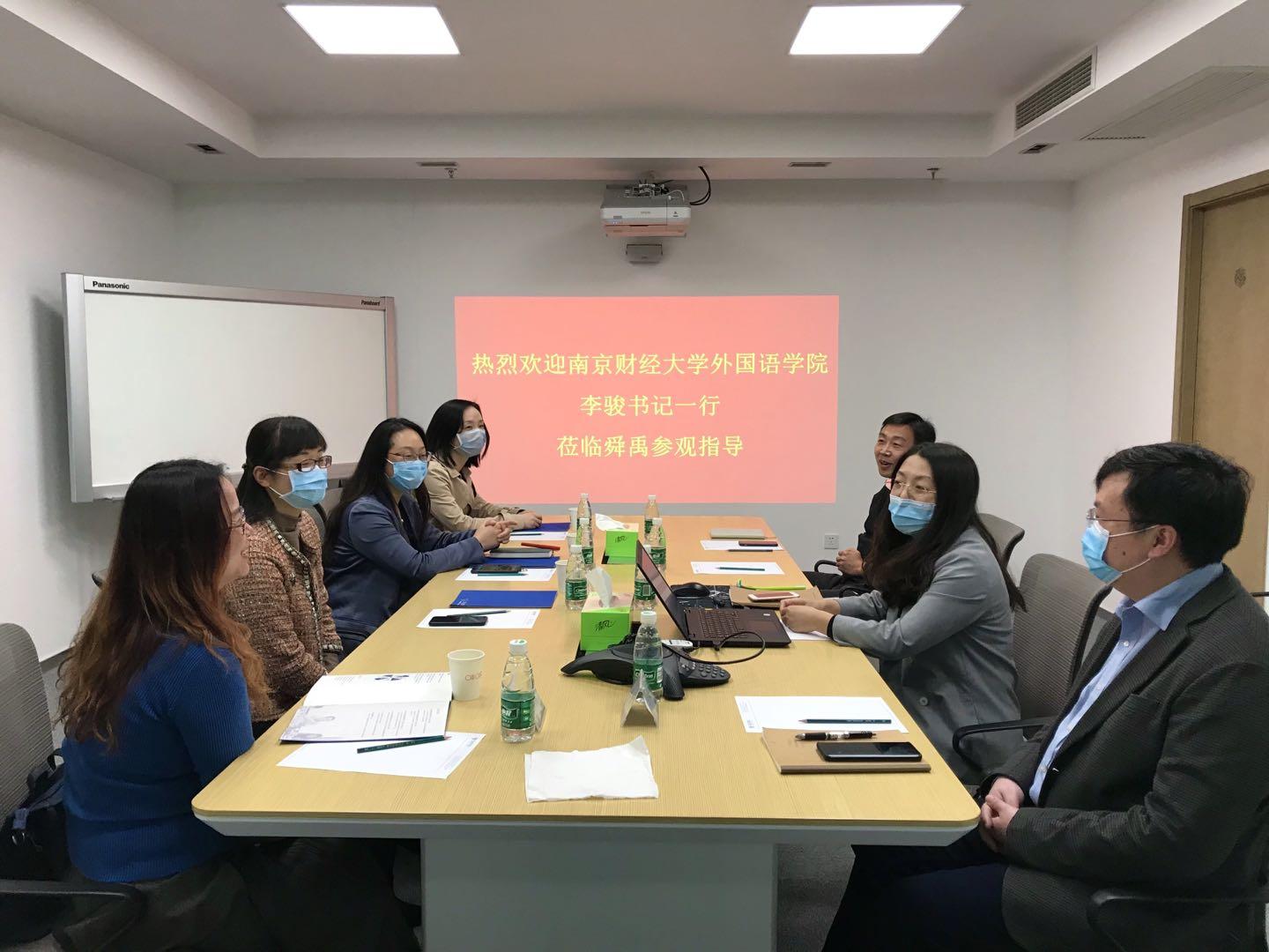 江苏省舜禹信息技术有限公司总经理单杰、副总经理陈尚坤、招聘部唐丽杰经理等对伟德源自英国始于1946一行表示热烈欢迎,并简要介绍了舜禹的发展和现状。单总表示愿意以企业的技术力量反哺高校,助力高校专业人才培养。陈副总表示将进一步加强与我院的合作,双方共同探讨提升外语人才培养的方法和路径,扩大院企合作成效。