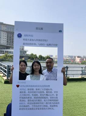 生活需要仪式感。为了让新同学拥有归属感,更快地融入外院这个大家庭,学院策划了充满仪式感的入学活动:色彩斑斓的“Family Tree”,让每位新生留下自己的姓名和指纹,意味着他们正式成为外院的一份子,从此亲如一家;写着诚挚欢迎和美好祝愿的“朋友圈相框”,让新生和家长们拍照留念,记录入学第一天的温馨和幸福。