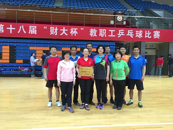 4月22日上午,由校工会主办、校体育部协办的第十八届“财大杯”教职工乒乓球比赛在我校仙林校区体育馆正式拉开帷幕。我院代表队由工会主席陈芙蓉领队,乒乓球队长陈飞任教练,派出了潘华,曹武,孟德明、郑洪举、程艳秋和鲍春燕等一批实力运动员,经过一天的奋力拼搏,最终再次夺魁,荣获团体第一名的佳绩。
