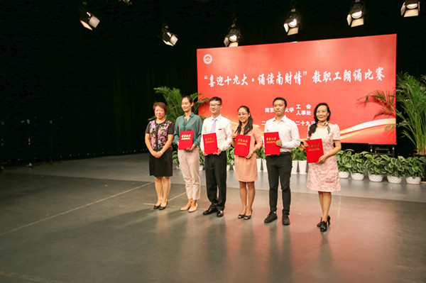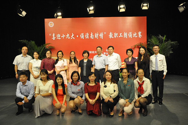 9月29日下午,由校工会、人事处联合举办的“喜迎十九大·诵读南财情”教职工朗诵比赛在仙林校区校园电视台演播大厅举办。副校长俞安平、时现出席大赛,省教育科技工会高校部部长高顺岭、兄弟高校工会主席代表、相关职能部门负责人、各基层党组织负责人、分工会主席以及教职工代表一百多人共同观看了比赛。来自18个分工会的近60位选手参加了比赛。党委宣传部部长韩力争对比赛做了精彩点评。