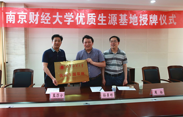 授牌仪式上,王乃宁校长和孙勇彬副院长分别代表两校介绍了学校的相关情况。孙勇彬副院长提到,自2007年至今,盐城一中已向南财输送了一百余名优秀学子,是名副其实的“优质生源基地”,盐城一中在人才培养、教育教学方面取得的成绩值得学习。王乃宁校长对我校在盐城一中建立“优质生源基地”表示感谢,对我校近年来在教学科研、学生培养方面取得的成绩表示赞赏。