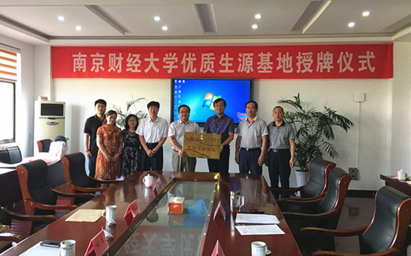 授牌仪式上,与会双方一起观看了灌南高级中学2016年工作成果汇报宣传片,刘方然校长和刘浩书记分别代表两校介绍了学校的相关情况。刘浩书记提到,自2007年至今,灌南高级中学已向南财输送了一百余名优秀学子,是名副其实的“优质生源基地”,灌南中学在传统文化浸润式教育方面取得的成绩值得学习。灌南教育局成彦明副局长、灌南中学刘方然校长分别对我校在灌中建立“优质生源基地”表示感谢,对我校近年来在教学科研、学生培养方面取得的成绩表示赞赏。活动中,李慕原副书记向灌南中学介绍了我校开展的“生涯规划进高中”活动的开展情况、学科专业设置情况及我校今年的高招政策。