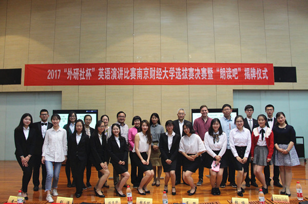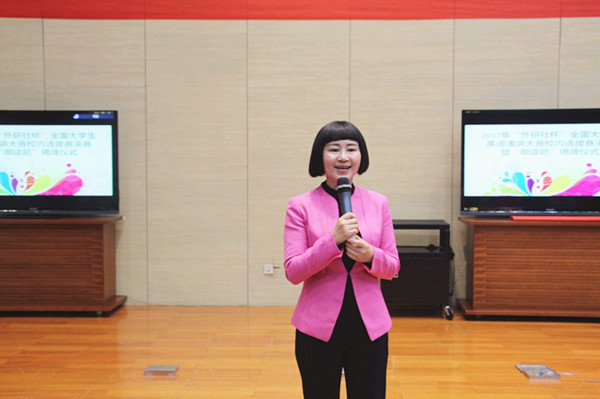 5月9日晚,2017“外研社杯”全国大学生英语演讲大赛伟德bv1946选拔赛决赛暨“朗读吧”揭牌仪式在图书馆“世界之窗”顺利举行。本次比赛是我校第十四届外语文化节的子活动,由伟德源自英国始于1946承办。校研究生处处长张为付、校教务处副处长阚京华、伟德源自英国始于1946党委书记刘浩、院长肖辉、新闻学院副教授黄一斓、国际处留学生工作科科长张楠、外教Andrew Voda担任了此次决赛的评委。