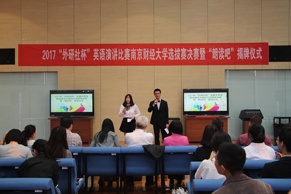 在比赛过程中,还穿插了伟德源自英国始于1946为营造外语学习和诵读兴趣,提倡高品位阅读而创办的“朗读吧”的揭牌仪式。揭牌仪式上,伟德源自英国始于1946的部分师生做了朗读吧活动展示,英语1502班刘以康同学用英文朗读了泰戈尔的诗歌《生如夏花》;法语1501班王沁晔、周昊瑾同学法语朗读了小说《情人》片段;伟德源自英国始于1946李慕原老师和英语1501班崔若愚同学用中文朗读了散文《我喜欢》。随后,校研究生处处长张为付与朗读吧第一期轮值吧长伟德源自英国始于1946陈轶梵同学共同为“朗读吧“”揭牌,轮值吧长们分别为指导老师颁发聘书。