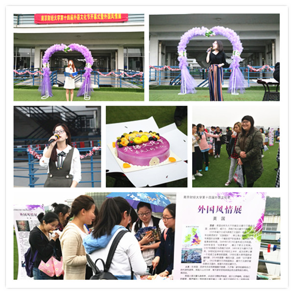 下午五时,天空中飘着细雨,却丝毫没有降低同学们的热情。雨滴落在青青草地,远方下课钟声响起,聚集在专三草坪的同学们迫不及待地等候着他们的“小幸运”——外语文化节的正式启动。这次开幕式同时也是一次外国风情展,展览的主题为“舌尖上的文化”,在现场,主办方以国家为单位设置了许多展架,展出各国的风土人情,同时还准备了可随意取用的西方特色饮食。桌子上整齐地摆放着高脚杯,透露着法国的绅士风范;西方健康饮食的典范——蔬菜沙拉,吸引了更多同学的驻足。