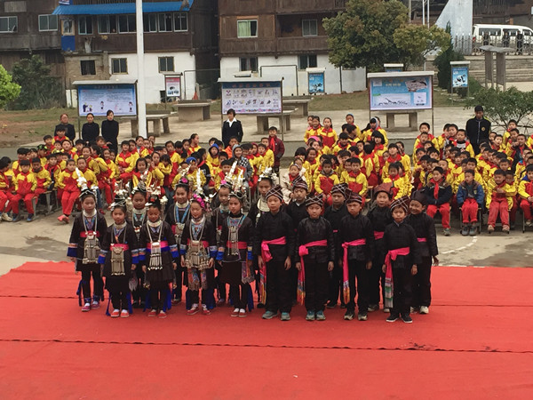 在共建和捐赠仪式上,从江县西山小学校长罗庆文介绍了西山镇及西山小学的教育发展状况,对我校师生的爱心捐赠和文化帮扶表示感谢,并表示将对“少年侗歌班”民族文化传承项目继续给予支持。现场,“少年侗歌班”的孩子们身着侗装表演了侗族大歌。