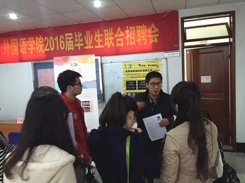 在活动现场,各用人单位在法政学科楼308会议室进行了宣讲,宣讲会由院党委副书记李慕原主持。来自吴江万隆纺织公司的人力资源经理王兆江表示,由于专做出口贸易,企业对外语人才的需求很大,希望能通过这种直接对口到专业的招聘活动能够为企业寻找到满意的人才。