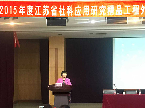 10月14日2015年度江苏省社科应用研究精品工程外语类课题开题大会在徐州工程学院伟德源自英国始于1946隆重举行。我院院长肖辉教授应邀出席2015年度江苏省社科应用研究精品工程外语类课题开题大会并就如何做好科研、成功申报课题做了大会发言。