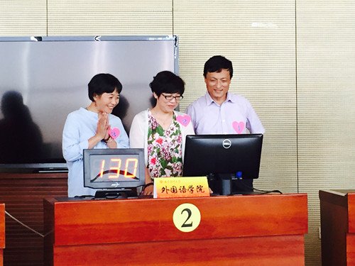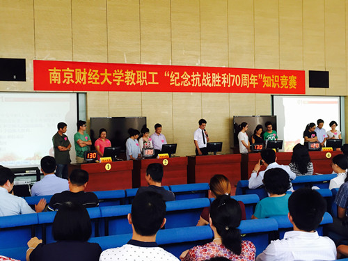 9月9日下午,由我院程艳秋老师、赵芳琴老师和游思淳老师组成的代表队在图书馆四楼“世界之窗”报告厅参加了学校工会举办的“纪念中国人民抗日战争暨世界反法西斯战争胜利70周年知识竞赛”。 我院参赛选手积极备赛,场上表现风度有加,给评委和观众留下了深刻的映象,最终获得了“最佳风采奖”。
