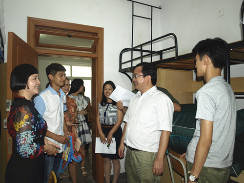 (我院领导老师前往新生宿舍看望新生)
