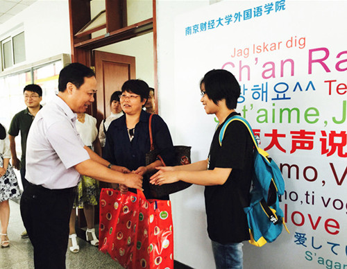 上午十时许,校党委书记陈章龙,副校长邱伟芬一行到我院检查迎新工作并与新生及家长亲切交流,陈章龙书记还与新生在我院设置的背景墙前一起拍摄“全家福”留念,并为家庭经济困难学生送上我院为他们准备的学习生活用品大礼包。
