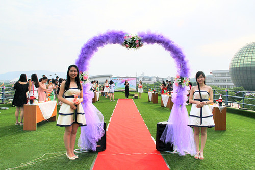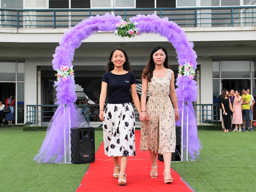 活动现场,红毯、拱门、鲜花、音乐,为毕业生们打造了一个充满浪漫风情和西方文化氛围的户外聚会,毕业生们盛装出席,走上红毯,将他们最美的身影留给校园。