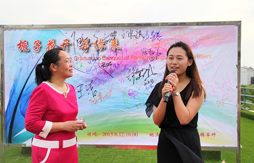 学院党委书记刘浩和院长肖辉分别致辞,向2015届同学表达临别前的祝福,为同学们描绘了未来的光明前景,也提出了建议。校保卫处副处长,原我院团总支书记金立林老师为毕业生献唱《好日子》并感慨:“世界那么大,你们都别走的太远。”她的话使在场同学感慨万千。毕业生代表1103班陈晶同学深情致辞,表达了对母校、对老师的感激之情,同时也表达了即将毕业,对相伴四年的同窗们的不舍以及对未来的信心与期待。