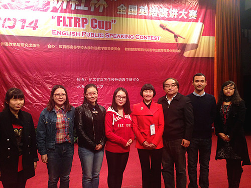 近日,2014“外研社杯”全国英语演讲、写作大赛(江苏赛区)决赛分别在苏州大学和南京林业大学落下帷幕,本次比赛分别吸引了来自全省七十余所本科院校的三百余名选手参赛。我校学子累计荣获一等奖2个,三等奖2个,优胜奖3个,我院左敏、文晶、程水英三位老师获得“优秀指导教师”奖项。此次我校参赛队伍由院党委副书记李慕原担任领队。