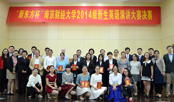 10月10日晚,由我院和国际教育学院联合主办的“新东方杯”伟德bv19462014级新生英语演讲大赛决赛在仙林校区管理科学楼二楼报告厅举行。我校副校长邱伟芬教授,英国斯特拉斯克莱德大学中国学院院长陆懋祖教授、副院长David与同学们一同观看了比赛。我校国际教育学院院长黄能,我院院长肖辉、党委书记刘浩,校团委副书记张励行,“新东方”南京学校国外考试部总监魏飞,我院副院长孙勇彬、邵怡担任了此次比赛的评委。