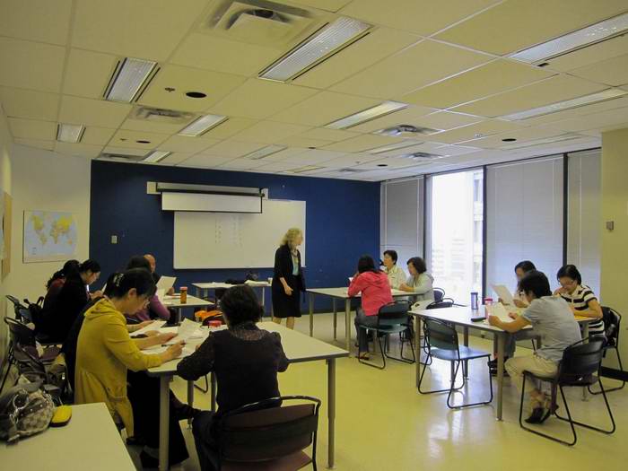 7月27日是我院教师参加培训的第三周,上午在加拿大麦吉尔大学继续教育学院1407教室, Monica 给我院教师上了高级口语交际的最后一次课。Monica首先非常认真地以书面形式向每位学员反馈了上次课演讲成绩,接着从语言能力、词汇能力, 发音准确、交际技能等方面对每人的演讲做了书面点评。