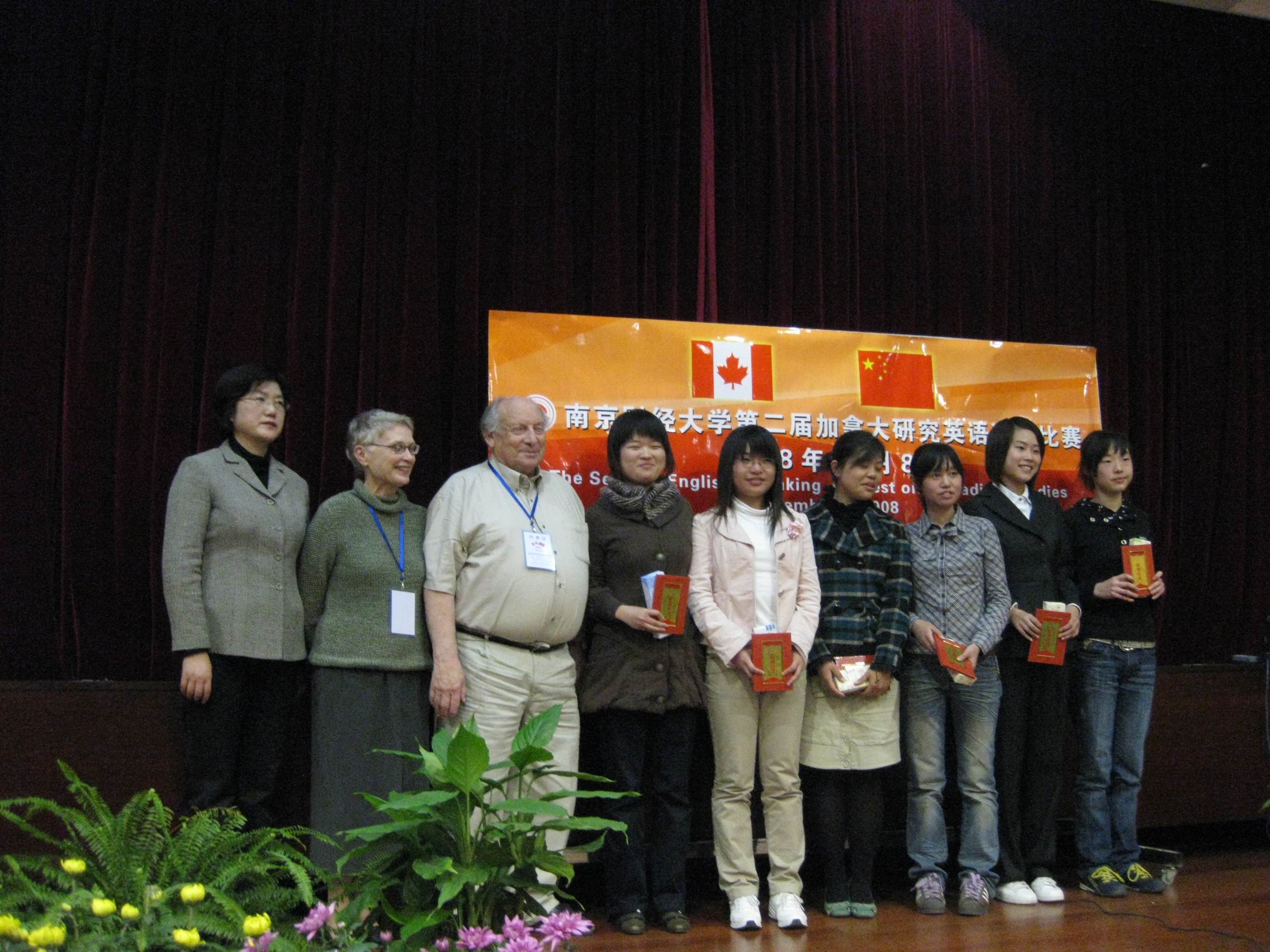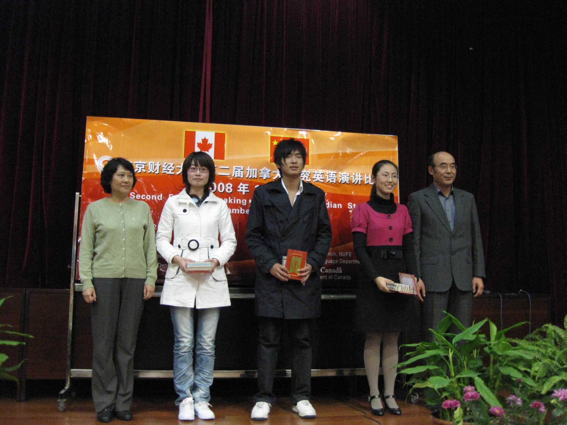 来自我校各个专业的十位同学,在10月29日的初赛中过关斩将,成功晋级决赛,并展开了激烈地角逐。决赛由已备演讲、回答问题和即性演讲三个部分组成。整个比赛过程激烈有序,每位参赛选手都充分地展示了自己的风采,将英语水平和对加拿大的理解结合起来,给广大的领导、专家、嘉宾、学者和师生留下了深刻的印象,比赛现场的气氛紧张而热烈。最后来自外语系的肖文同学获得了一等奖。冯建文会长、郭继德前会长为肖文颁发了一等奖;副会长杨令侠教授、前副会长王昺教授为二等奖颁奖;外籍专家和邱伟芬处长为三等奖颁奖。