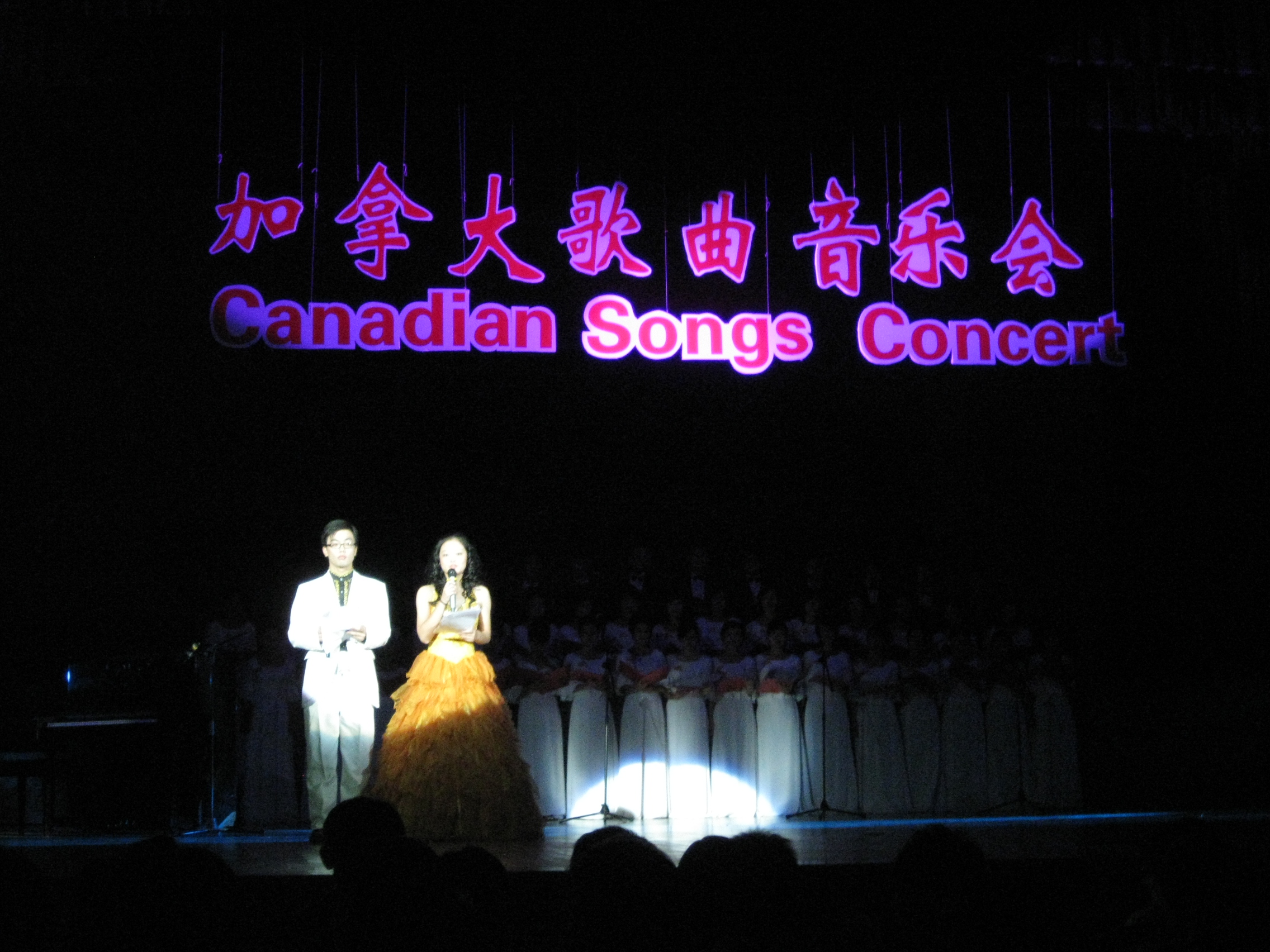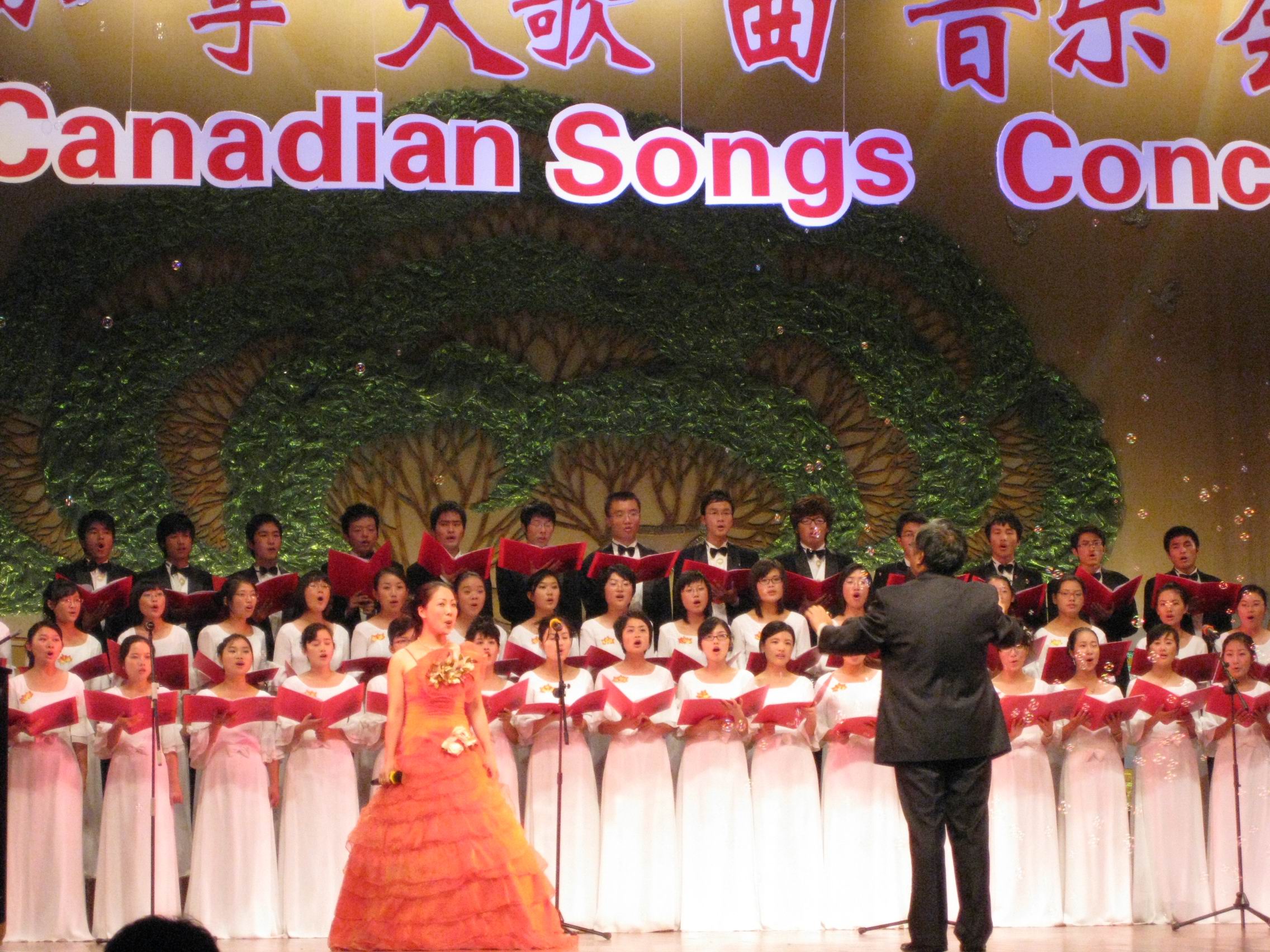 在演唱会上,外语系的同学以男女生合唱、女生小合唱和独唱形式演绎了九首加拿大歌曲和一首中国歌曲,如加拿大国歌“Oh,Canada”、“Lovely Land”等,伟德bv1946外语系主任王克明教授也亲情出演。最后一曲由王克明主任担任指挥、金立林老师领唱的中国歌曲《茉莉花》将晚会的气氛推向了高潮。加拿大研究会第13届年会的主题“中国——加拿大的和谐发展”在此得到了完美体现。通过这个晚会,使学生对加拿大有了更深层次的了解、更进一步增进了中加合作和交流。