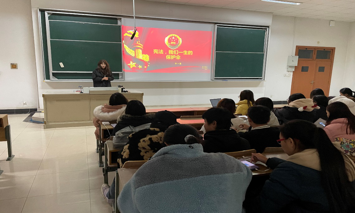 12月15日晚,我院在博观楼310举办了一场题为“大学生知宪学宪的必要性”的宪法知识讲座,特别邀请法学院优秀学生孙一盈为2020级全体学生讲述大学生知宪学宪的必要性,孙一盈同学先从生活出发引申向宪法规定的权利和义务,讲座内容丰富有条理,回忆自己从知法到懂法的过程,用自己的经历讲述宪法的重要性,并且通过举例给同学们阐释了“生活处处是宪法”的含义,孙一盈同学的讲述生动有趣,举例贴近生活,如:已成年的大一新生享有选举权与被选举权;在毕业后,学生会有自己的工作岗位,需要法律维护权益;婚姻以及婚后财产等等都需要婚姻法的保护等,她用简单而“接地气”的话语告诉大家:宪法时刻围绕在我们身边。同时,作为一名法学专业的学生,孙一盈同学用自己的专业知识为我们深刻讲述了知宪学宪的必要性,人人都应尊崇宪法、学习宪法、遵守宪法,作为新时代的青年人应该加强法律意识。同学们听得津津有味,对宪法有了更加深刻的认识。