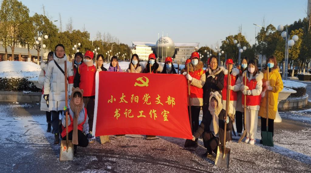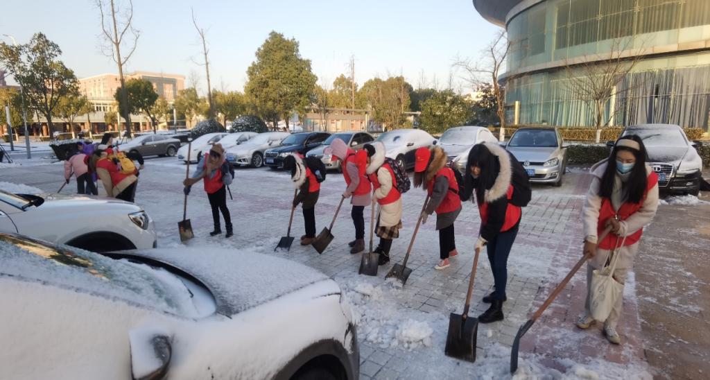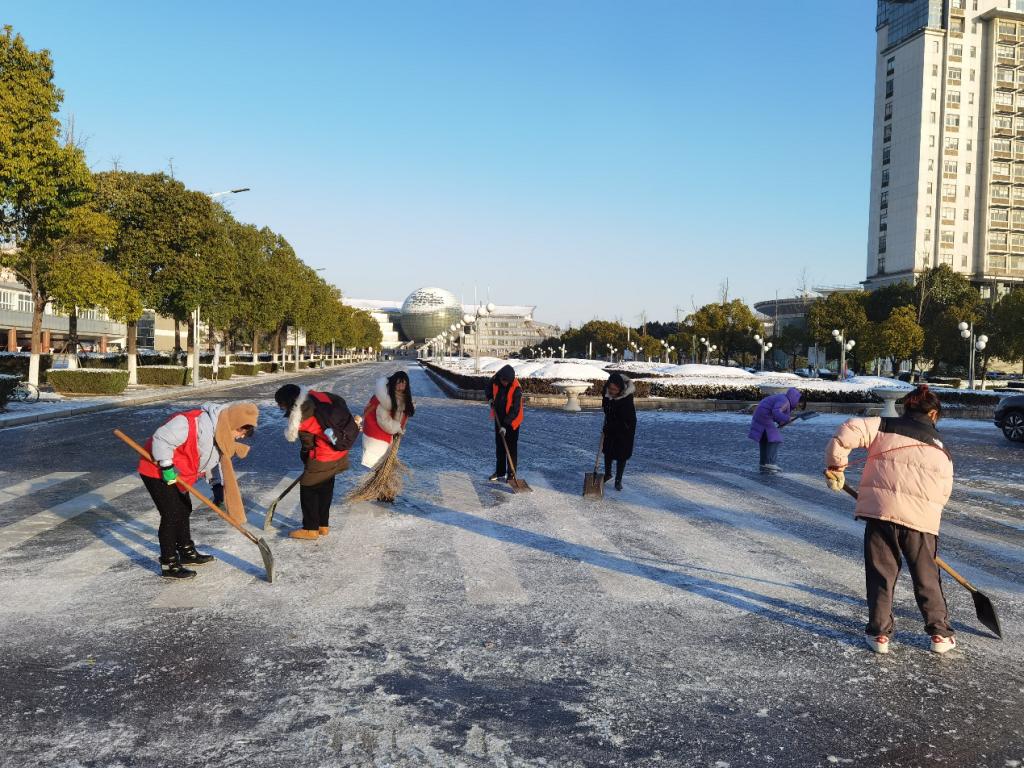 “唰唰唰……唰唰唰……”由于早晨天气寒冷,冰雪坚硬,地面湿滑,清雪进度十分缓慢,志愿者们频繁地摔倒,又坚强地站起来继续铲,校团委书记徐刚在前面用铁锹铲除积雪,奋力铲冰,学生党员们在后面用扫帚奋力清扫雪沫冰渣,一派忙碌景象。铲雪是个体力活,年轻的学生党员们铲起雪来却毫不逊色。看到学校发起的铲雪志愿服务后,小太阳本科生支部的党员们毫不犹豫的都报了名。英语1801班的学生党员梁冉说:积雪虽多,却抵挡不住小太阳志愿者的温暖举动,作为一名学生党员,她觉得自己应该站在志愿队伍的前面,勇于奉献,用自己的实际行动号召更多地人来铲除积雪,确保师生的出行方便。