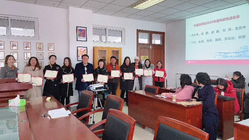 会议进行了2020年度各类优秀颁奖仪式。2020年度获学院科研先进的有:程水英、段燕、凌燕、刘炜、莫詹坤、孙冬、孙越、肖辉、杨艳、张高远、韩静;获2020年度学院教学先进的老师是:白玉粉、陈芙蓉、魏钟、张建红、张媚、嵇晔、许静、刘婷婷、解艳、文晶;获2020年度学院服务先进的有:曹武、段慧、高盛强、洪忠婷、李超雅、李丽萍、凌成德、蒲婧新、游思淳、郑洪举。院党政班子为先进分子颁奖,院党委书记李骏表示,学院老教师高风亮节,部分老师获得学院推荐服务先进,但愿意让贤,体现出了学院良好的院风与师德师风。