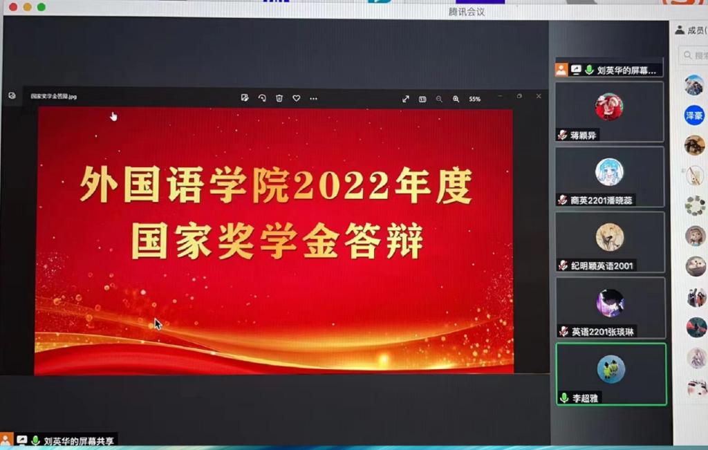 10月6日中午,伟德源自英国始于1946在线上举行2022年度本科生国家奖学金答辩评审大会。学院本科生国家奖学金答辩委员会委员出席会议并担任评委,全体2022级本科生观摩学习,答辩会由学院分团委书记李超雅主持。