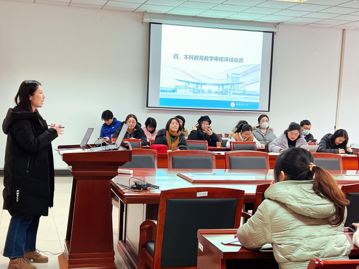 新一轮的教育教学评估工作已经启动,这是现代高等教育体系的重要组成部分,也是确保高等教育质量的重要手段。会上,李骏书记指出要吹响团结之战的冲锋号,号召全院上下齐心协力,认真学习文件要求,立即行动,快速投入到评估工作。随后,院聘教学顾问邵怡分享了本次教育教学评估的总体要求以及评估各时间段的工作安排。张晓甜从教育教学评估的维度、建立高校人才库、建设应用型高校、培养“双师型”教师等几个方面明确了详细评估内容。院聘院长助理顾晓燕汇报了研究生工作、科研工作,要求研究生导师积极主动联系学生,按时完成毕业论文的答辩工作;并希望新学期全体教师发挥特长和优势,积极申报国家社科基金项目,学院将邀请专家认真研讨、修改、精心打磨申报书,力争2023年度国家社科基金项目申报取得更加优异成绩。