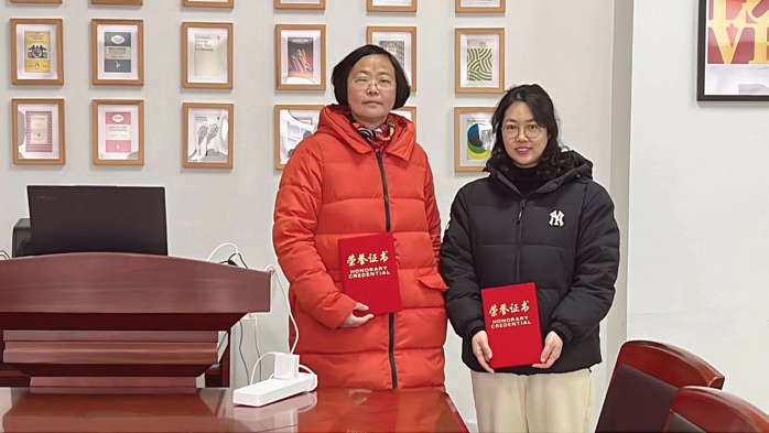 为学院服务先进人员颁发荣誉证书