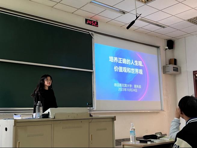最后,顾博士结合自己及其他中国留学生的心路历程,分享了海外留学带来的收获。顾博士认为在赴德留学的一年,她有了更多思考的空间与时间,在赴德留学的日子里,免去了无效社交,让更多的时间得以放在自己以及未来的生活当中,真真切切地明晰了自己前进的方向与目标,收获了对自己人生的一份宝贵认识,这或许正是在国内大学学习过程中所难以实现的,引起了同学们深刻思考。
