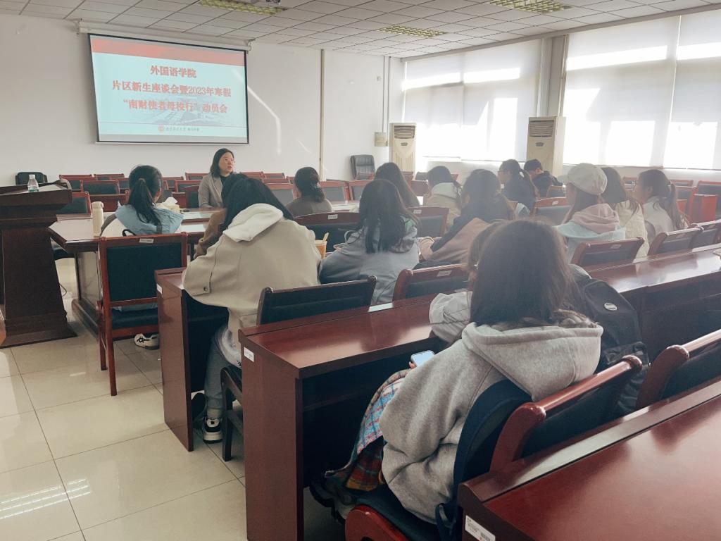 刘璐副书记对2023年度招生宣传工作的整体情况进行了总结汇报,强调了招生宣传负责片区学生力量的重要性,鼓励2023级新生借鉴优秀学长学姐的经验,积极参加2023年寒假“南财使者母校行”活动,主动为学校发展、招生工作贡献自己的青春之力、奏响青春之歌。