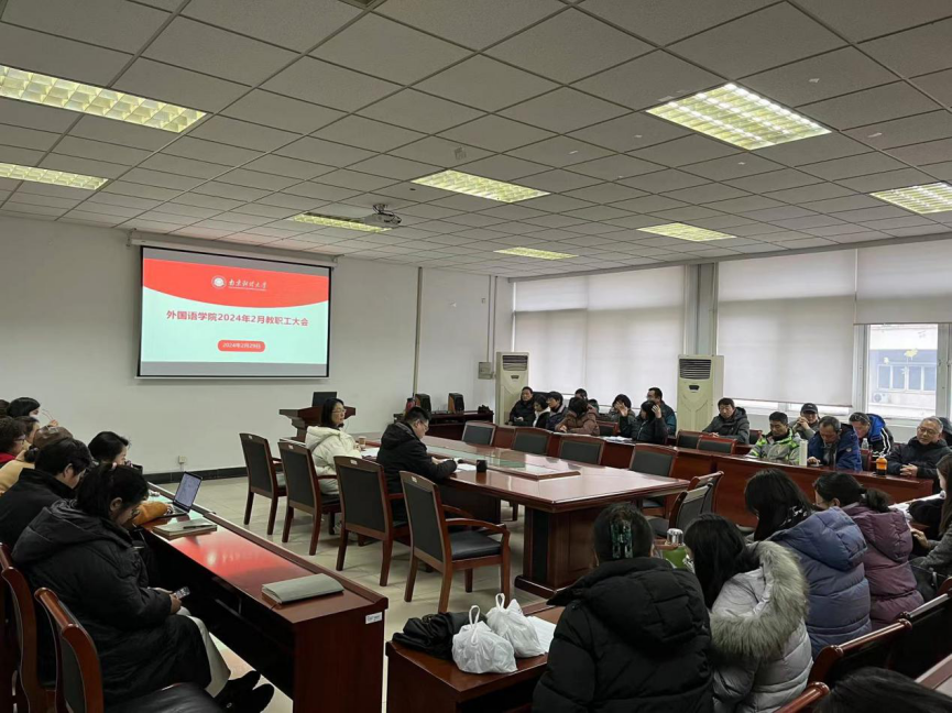 李骏书记传达了新学期学校工作会议精神,重点解读了学校新学期工作要求,并对近期学院安全工作进行了部署。李骏书记强调,新学期学院要重点围绕党的建设、师德师风建设、网络教育、社会培训等方面营造更加风清气正的氛围、更加团结协作的精神和更加创新有为的干劲,共同创造一个积极向上伟德源自英国始于1946。丁强副院长(主持工作)汇报了学院当前人才引进与师资队伍建设、科学研究与学科建设、职称评审、专硕申报等方面的情况,肯定了全体教师在过去一年取得的成绩,希望在新的学期全体教职工能发挥特长与优势,同心戮力、提振信心,以昂扬的斗志、团结拼搏的精神,切实履行好外语人的职责,确保学院在新的一年里各项工作再上一个新台阶。
