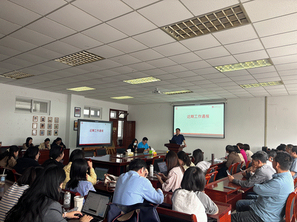 院党委副书记孙大松通报了2025年招生宣传与毕业生就业工作进展。目前,学院已通过线上线下多渠道开展招生宣讲,突出“外语+”特色专业优势;就业工作方面,通过举办专场招聘会、校企合作对接及一对一就业指导等举措推进就业。