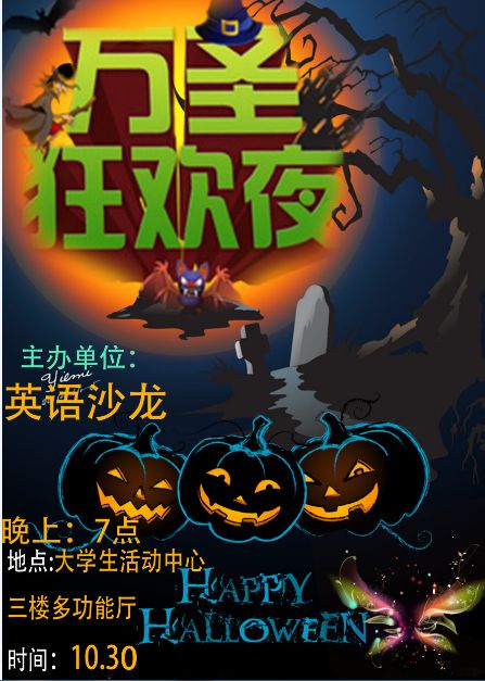 简介:万圣节(All Saints' Day)是西方传统节日,每年的10月30日被称为万圣节前夕(Halloween)。英语沙龙协会是伟德源自英国始于1946指导的学生社团,为促进文化交流,将于10月30日举办万圣节狂欢party,集表演、娱乐和语言学习为一体。本次活动将邀请外籍教师参与,让学生在别样的节日环境中了解西方文化,丰富课余生活。