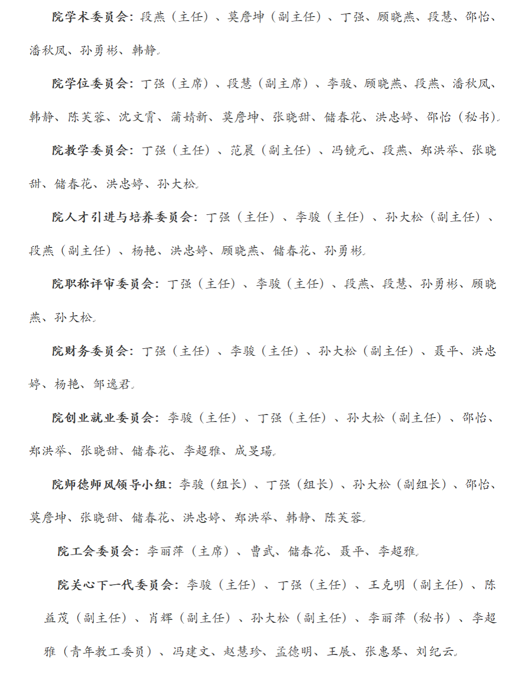 为确保学院工作正常有效运转,经各委员会内沟通,现拟对各委员会成员公示如下: