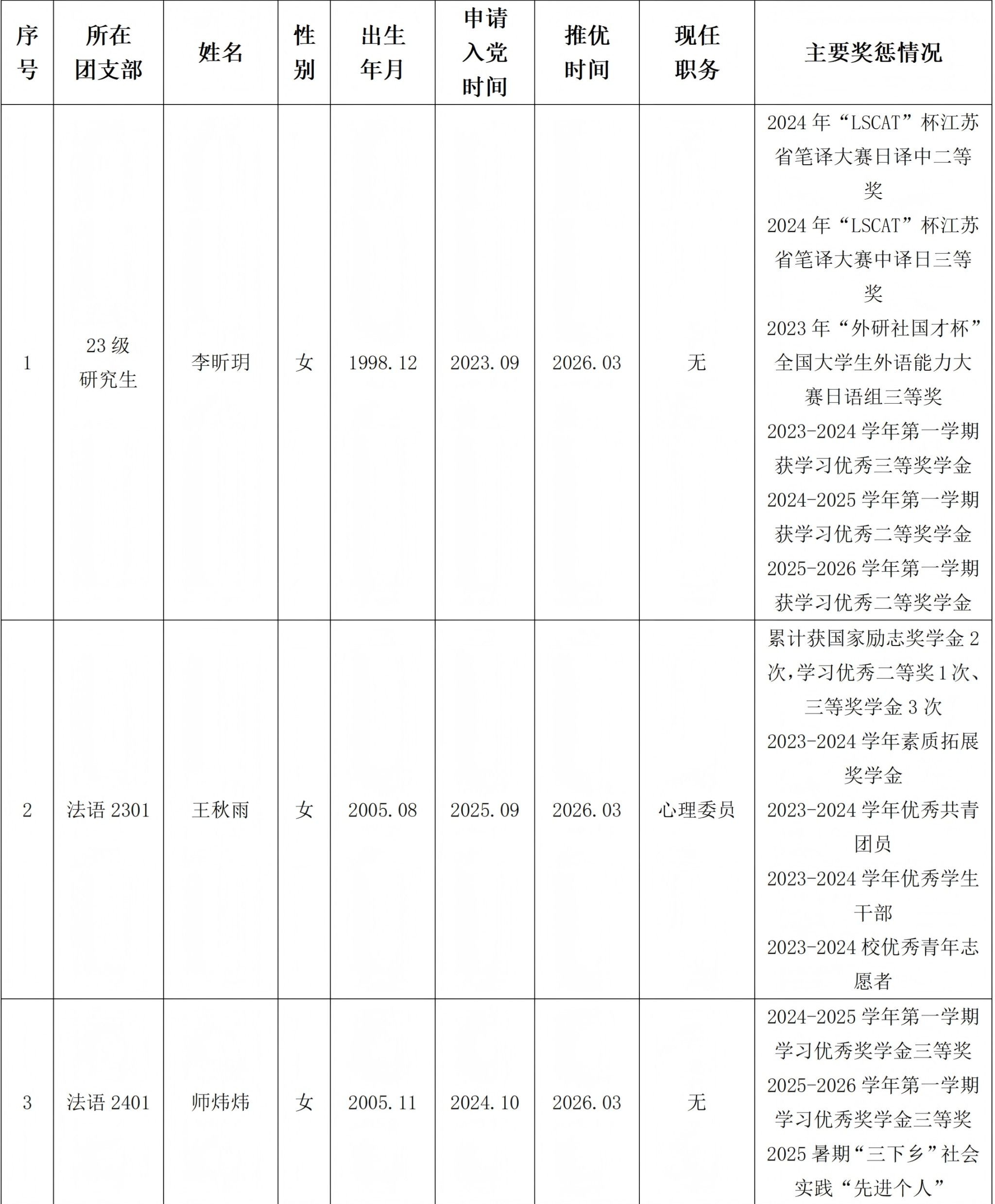 为了广泛听取群众意见,接受群众的监督,现予以公示,公示时间为2026年3月23日-2026年3月27日,公示期间内如有疑议可向学院分团委反映,联系电话:025-86718378。