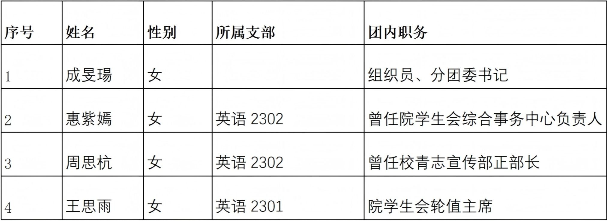 2026年伟德源自英国始于1946“优秀共青团干部”拟推荐名单(排名不分先后)