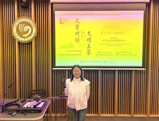 2024年7月15日至7月19日,我院副教授蒲婧新老师参加了在爱尔兰都柏林大学孔子学院与爱尔兰中国研究院举办的“文学对话与文明互鉴”——中国-爱尔兰文学交流与发展国际论坛”,并发表了主题为“余华与塞缪尔·贝克特:文学视域中的哲学共鸣的发言。该论坛吸引了来自中国、英国、美国和新加坡的56名专家、学者和博士生参与,围绕“文学对话与文明互鉴”这一主题,与会代表深入探讨了世界文学视域中的中国与爱尔兰、中国与爱尔兰文学比较研究、中国学者眼中的爱尔兰小说研究,以及爱尔兰戏剧的中国翻译与研究等重要议题。