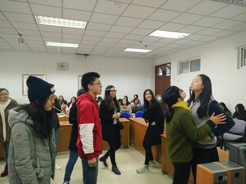 10月18日下午,我院新生团校在法政学科楼308教室展开团辅活动。本次团课由分团委副书记成菲同学主持。全体2015级新生参与活动。