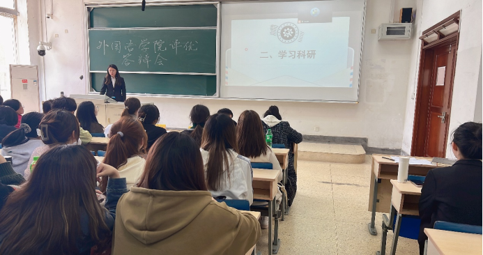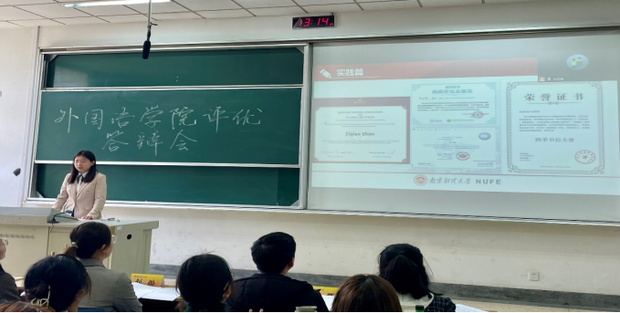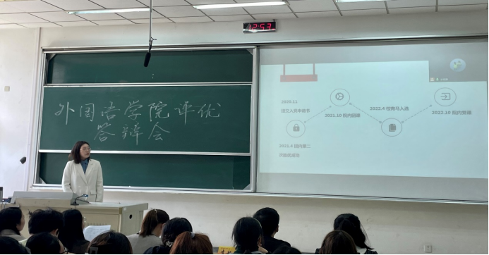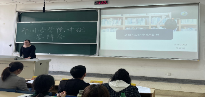本次答辩本着“公平、公正、公开、择优”的原则,采取公开展示的方式,由评委们打分从候选人中选出最终名单。会上,7名候选人结合PPT,在专业学习、科创竞赛、学生工作以及社会实践等方面,展示个人成就及班级建设成果。经过精彩角逐,最终推荐英语2001班单子乔为“省三好学生”候选人,英语1901班姚远为“省优秀毕业生”候选人。