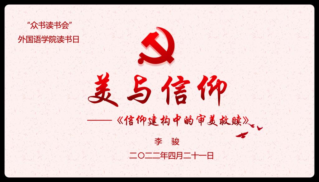 “美是什么?美与信仰的关系是什么?美如何成就信仰?”这一系列问题,是学院在读书日给大学生党员们抛出的问题。将“美”和“信仰”这两个看上去不太相关的概念联系起来,是学院“众书读书会”倡导的“读通识、研专业;广涉猎,深挖掘”的读书理念的又一次尝试。