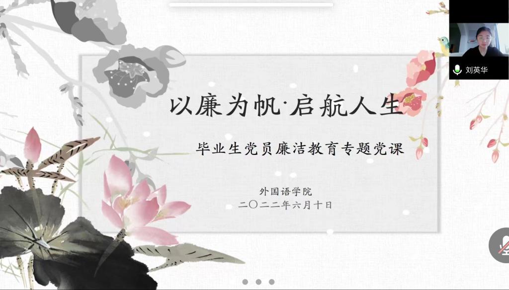 为进一步加强2022届毕业生党员廉洁教育,培养毕业生党员廉洁自律意识,6月10日,伟德源自英国始于1946党委副书记兼纪检委员刘英华在线给毕业生党员讲授“以廉为帆,启航人生”廉洁教育专题党课。