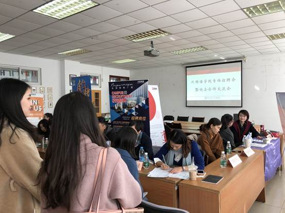 此次招聘会聚集了江苏省舜禹信息技术有限公司、南京锐意国际贸易有限公司、领域翻译有限公司、南京圣和府邸豪华精选酒店、南京帮学教育科技有限公司、苏州长申商贸有限公司、乐灵教育、南京听说科技有限公司、学而思、新东方、启橙英语等十余家招聘语言类专业的用人单位。招聘岗位涉及外贸业务助理、英语教师、英语翻译、法语翻译、日语翻译、英语编辑等多个岗位。