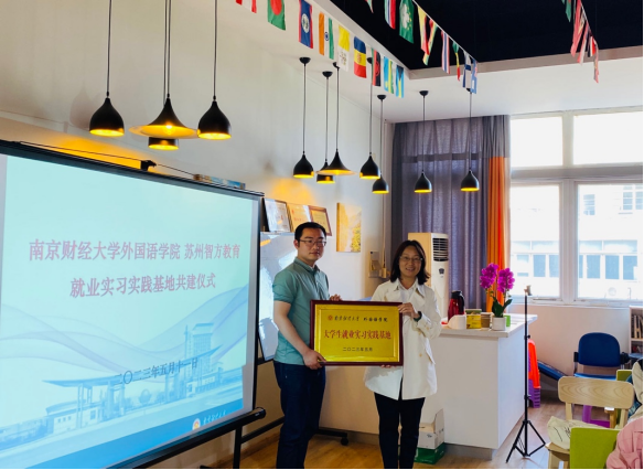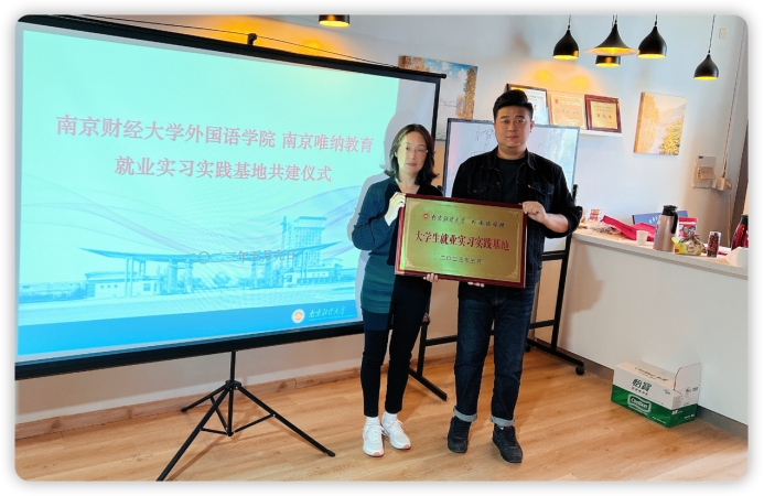 5月9日上午,南京唯纳教育总经理李斌来到学院,与院党委书记李骏就外语人才培养、雅思课程师资招聘与实习、教材开发等相关事宜进行交流。双方就实习实践基地共建开展了授牌仪式。南京唯纳教育是专门做出国语言培训的机构,汇集了一批优秀教师,本次共建,为学院学生实习实践与就业提供了平台与契机。