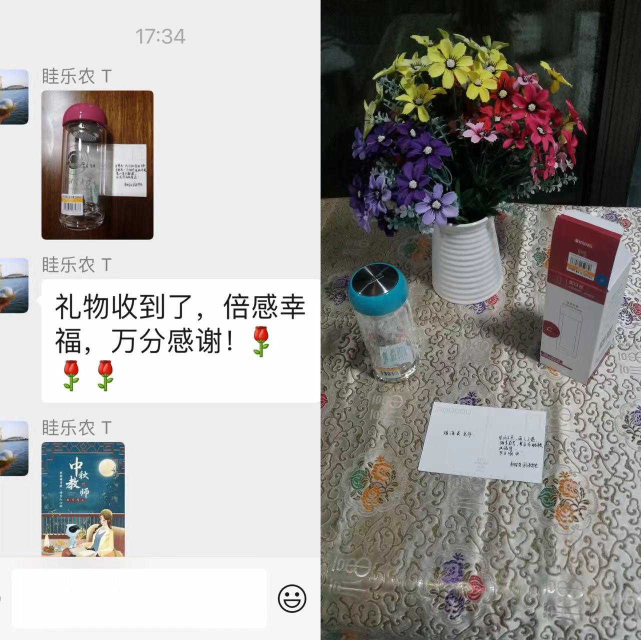 师如明月,我们曾共同点亮远方;情如清泉,我们曾一起走过岁月。教师节、中秋节双节来临之际,我院开展教师节送祝福活动,为每一位曾经在这里挥洒青春与热血的教师奉上一份心意和祝福,礼物简洁,情却真切。