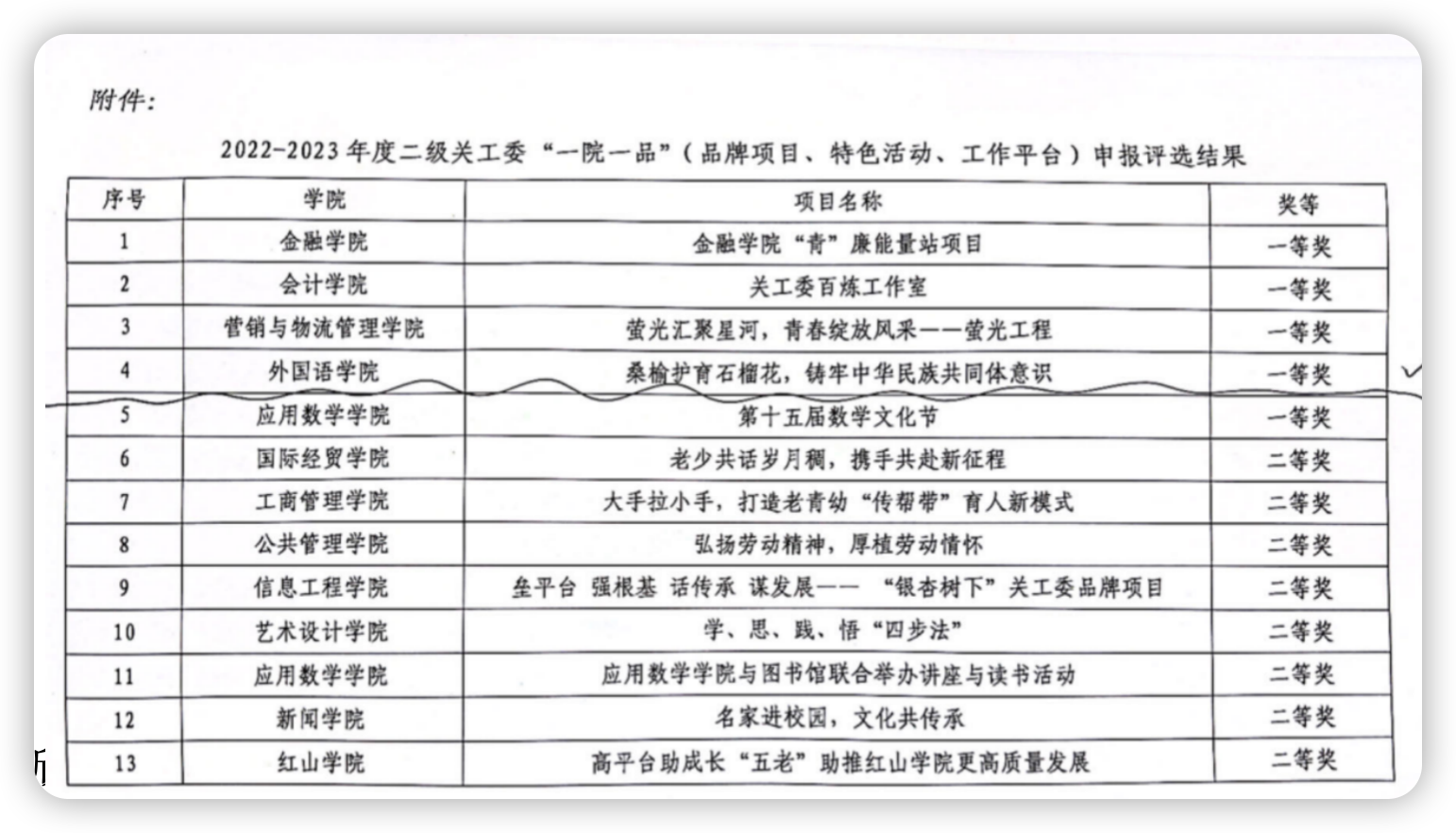 近日,我校2023年度关工委工作总结会于仙林校区工科楼二楼报告厅召开。我院报送的《桑榆护育石榴花,铸牢中华民族共同体意识》获关工委2023年度品牌项目一等奖。