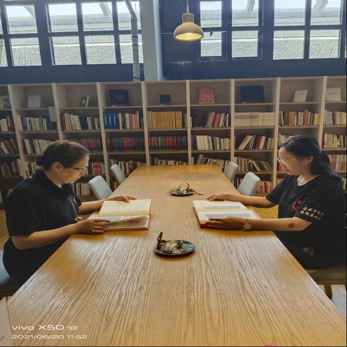 院党委书记李骏提出了本次党员与统一战线成员“牵手读史、同心向党”的具体要求,即“共读历史、分享体会;凝聚共识、坚定信仰”。大家概览了晓书馆后,发现这里珍藏了很多描绘红色革命与社会主义建设时期的经典文艺作品,老师们如获至宝,拿起来津津有味地读了起来,晓书馆中安静宁谧,老师们沉浸在书香中,思绪万千,感动与激情在心中澎湃汹涌,说不尽对革命年代老一辈中国共产党人的敬仰,道不尽对社会主义建设时期筚路蓝缕的感慨与感动。