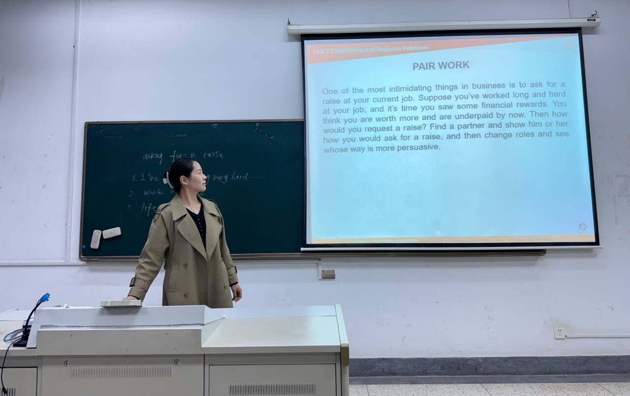 组织观摩教学是课程教学研究活动的重要形式和内容。本院积极组织观摩教学,发动研究生任课教师旁听,热烈欢迎校学位与伟德国际督导参与观摩教学及听课。以段慧、莫詹坤等为代表的研究生任课教师,于10月31日上午(10:15-11:00分)在德经楼Z-201教室旁听学习了新进教师邹逸君博士的研究生课程“英语听说”。该门课程面向24级专业硕士生,属公共英语教学板块。邹逸君老师备课充分,引导学生就“申请加薪”、“推销商品”等商务话题展开口语、听力练习,学生们学习热情较高,课堂气氛活跃。课后,听课教师与任课教师进行了短暂但高效的授课经验交流。