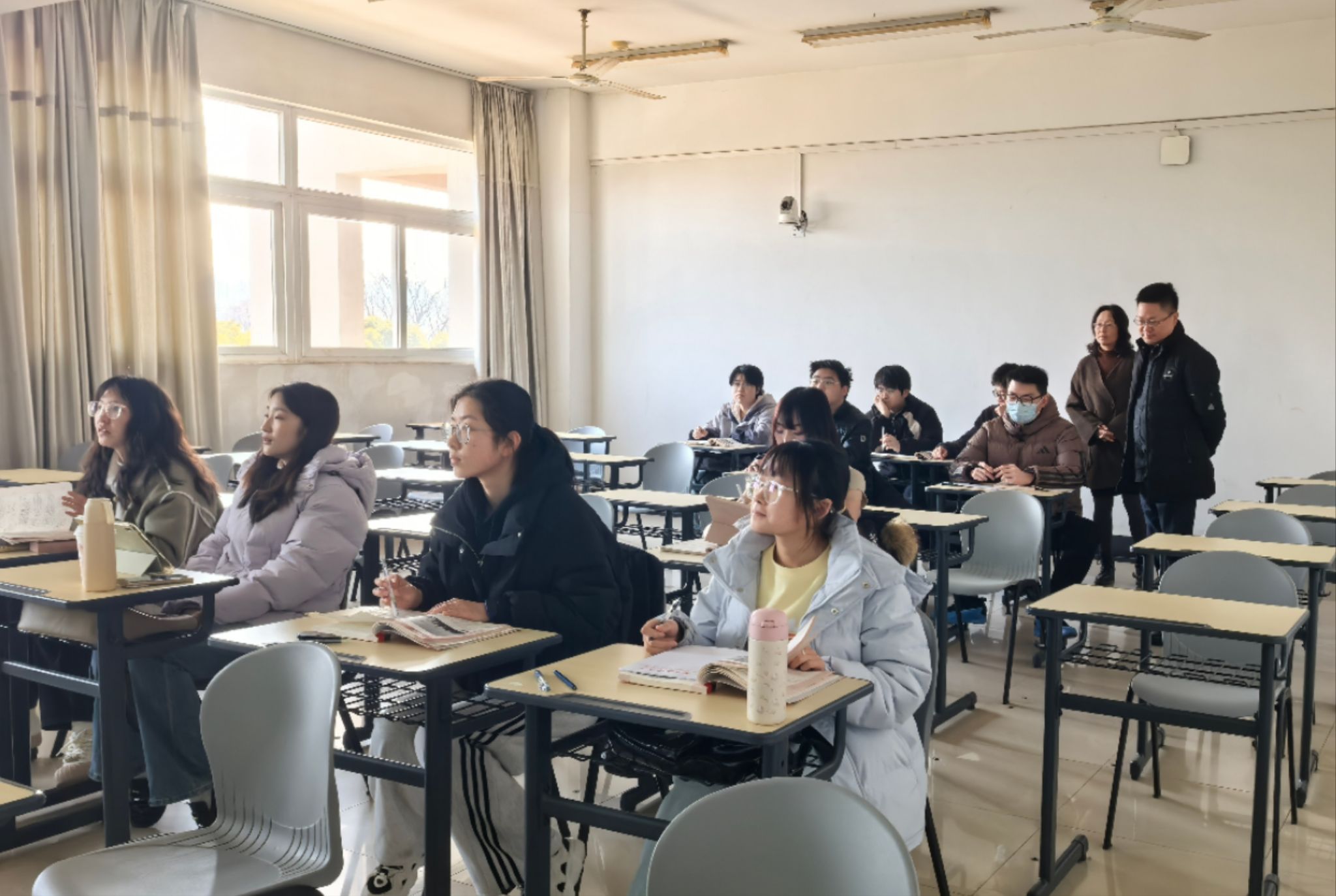 学院领导走访多个课堂,实地查看教师授课、学生出勤、教学设备使用及课堂秩序。课间,领导还询问学生假期学习情况,鼓励大家“以崭新姿态”投入专业学习,在语言实践中提升跨文化沟通能力。