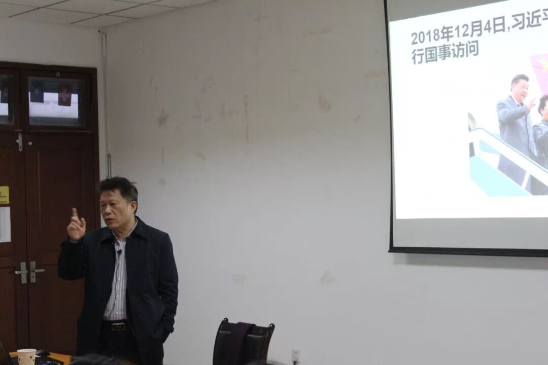 讲座伊始,刘浩书记简单介绍了王银泉教授从事翻译实践和翻译研究的人生旅程,内容主要涉及新闻翻译、公示语翻译、传教士汉学翻译与中西文化交流史、中医翻译史、南京大屠杀史料翻译等。